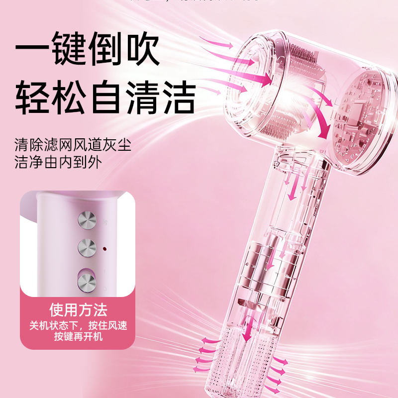 岸深电吹风机H1高负离子护发速干吹风筒酒店同款吹风机家用大风力