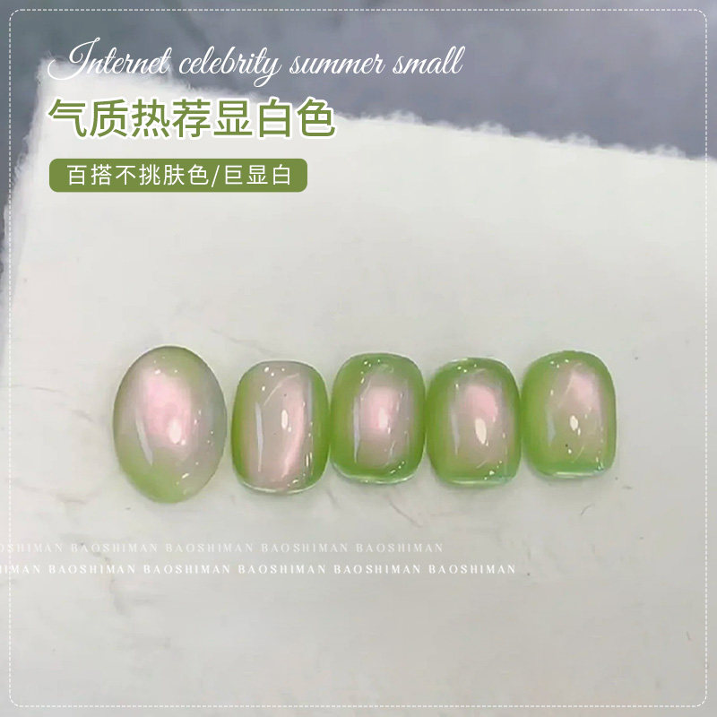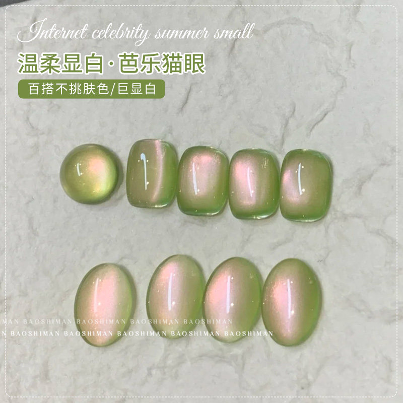 宝诗曼芭乐猫眼指甲油胶2025年新品爆闪绿色玻璃珠猫眼美甲店专用