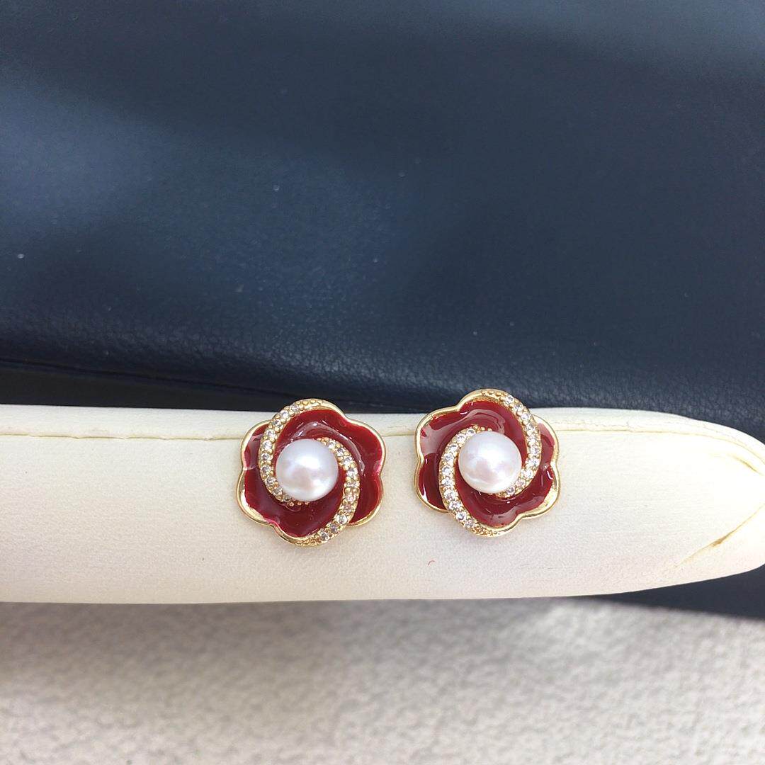 天然淡水珍珠耳钉女微镶锆石卷卷花珍珠耳饰S925纯银耳针