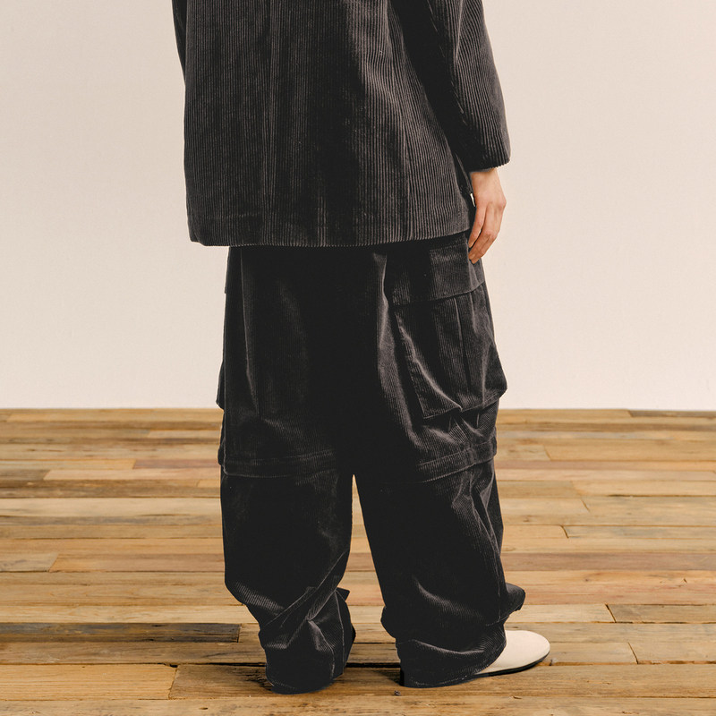 速写男装秋冬新款休闲宽松灯芯绒工装裤宽松时尚阔腿设计感男长裤