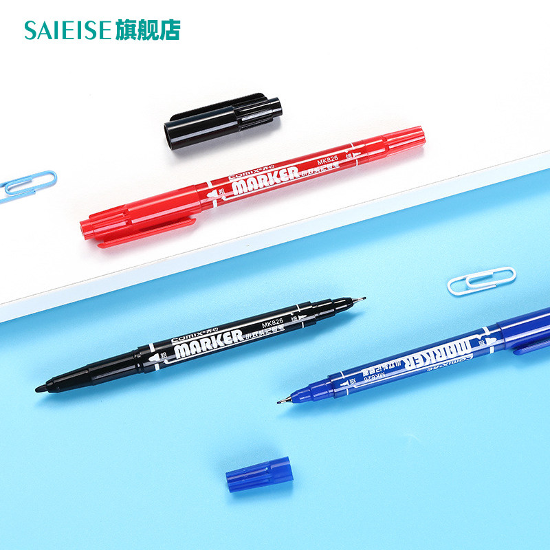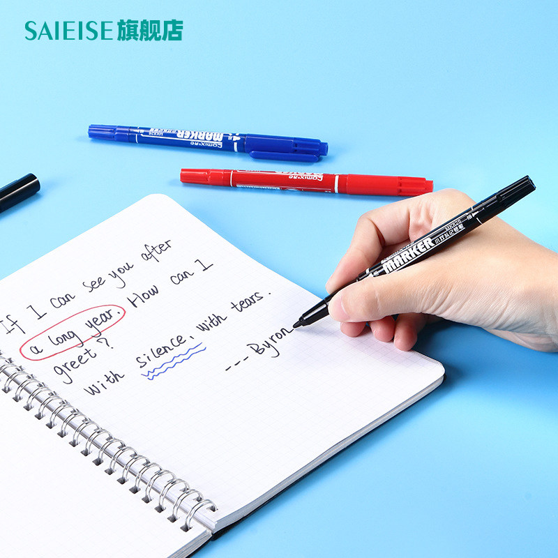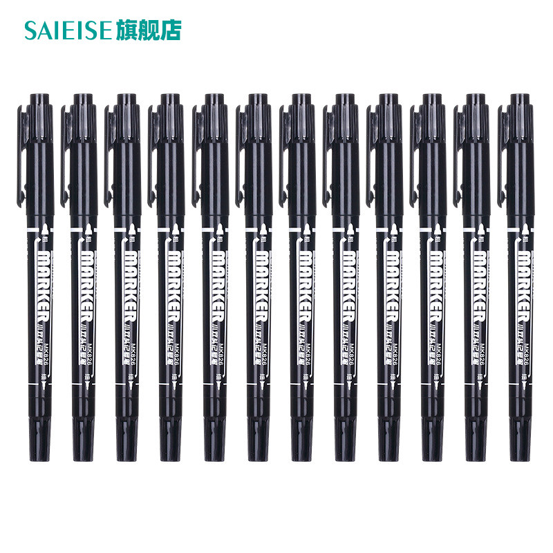 小双头记号笔0.5-1.0mm物流油性黑色记号笔12支/盒 MK826 物理化学化验室耗材 办公实验室用