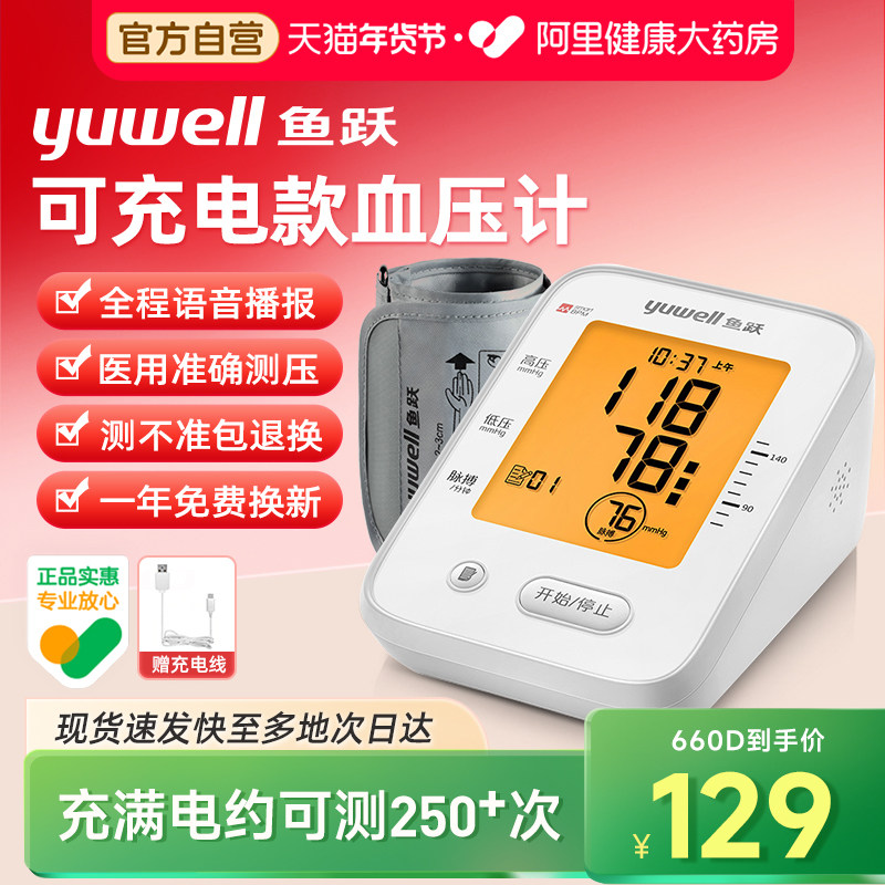 鱼跃血压家用测量仪高精准医用电子血压计老人全自动可充电血压仪