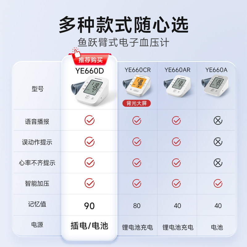 【国家补贴】鱼跃电子血压计臂式高精准测量仪家用测压官方旗舰店