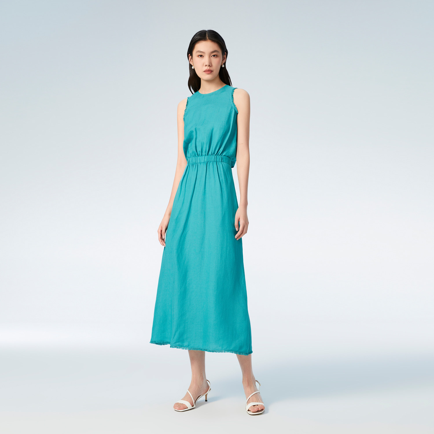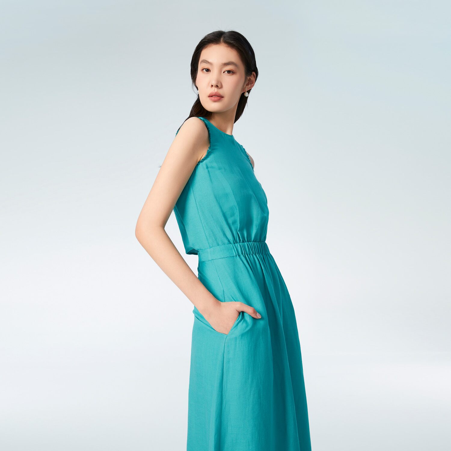OVV春夏热卖女装流苏装饰A字镂空度假风浪漫无袖连衣裙