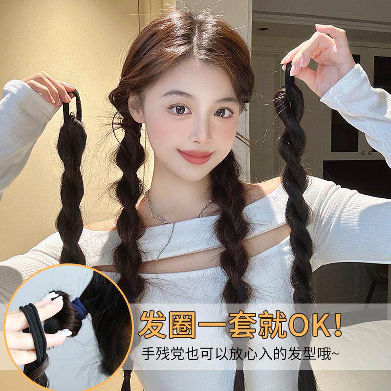 扭扭辫双马尾假发女长发甜酷麻花拳击辫子辣妹编发假马尾新款发型