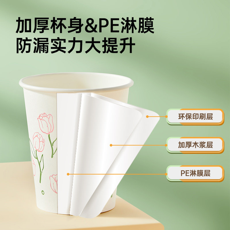 炊大皇一次性纸杯繁花杯子家用加厚硬防烫大号高级咖啡食品级水杯
