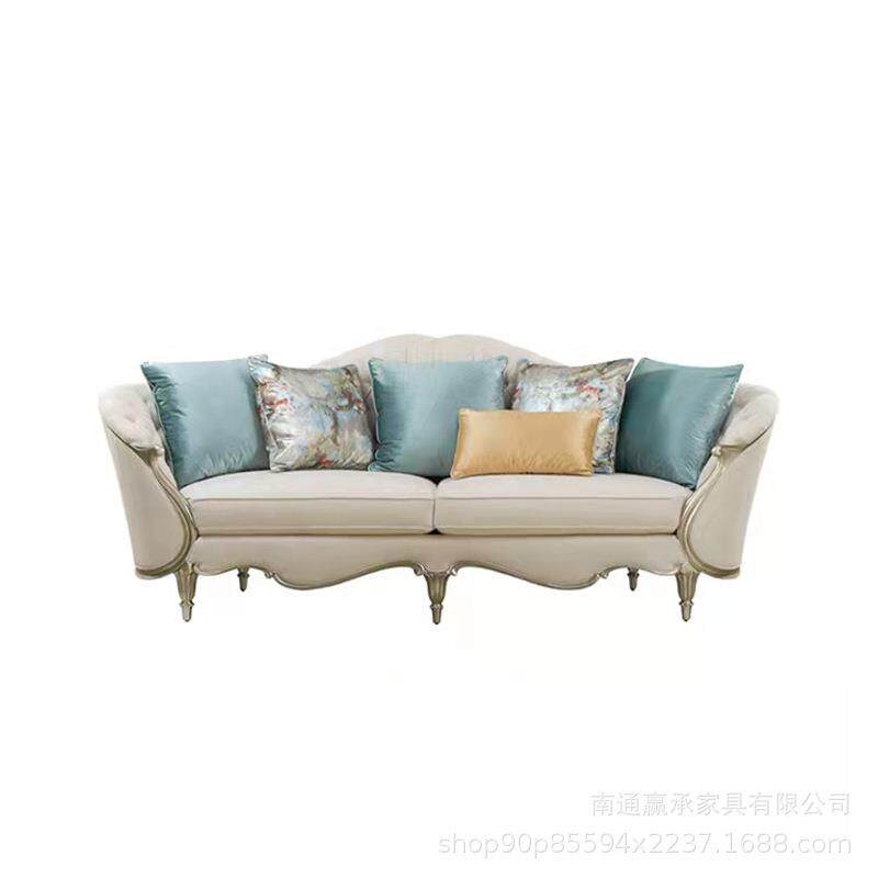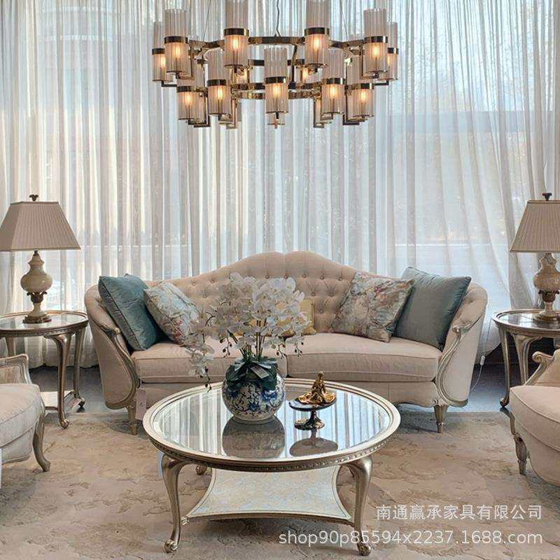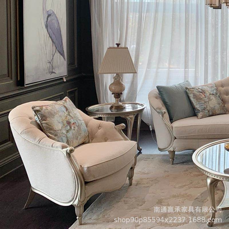 美式轻奢布艺三人沙发组合欧式实木雕刻沙发法式别墅样板房客厅