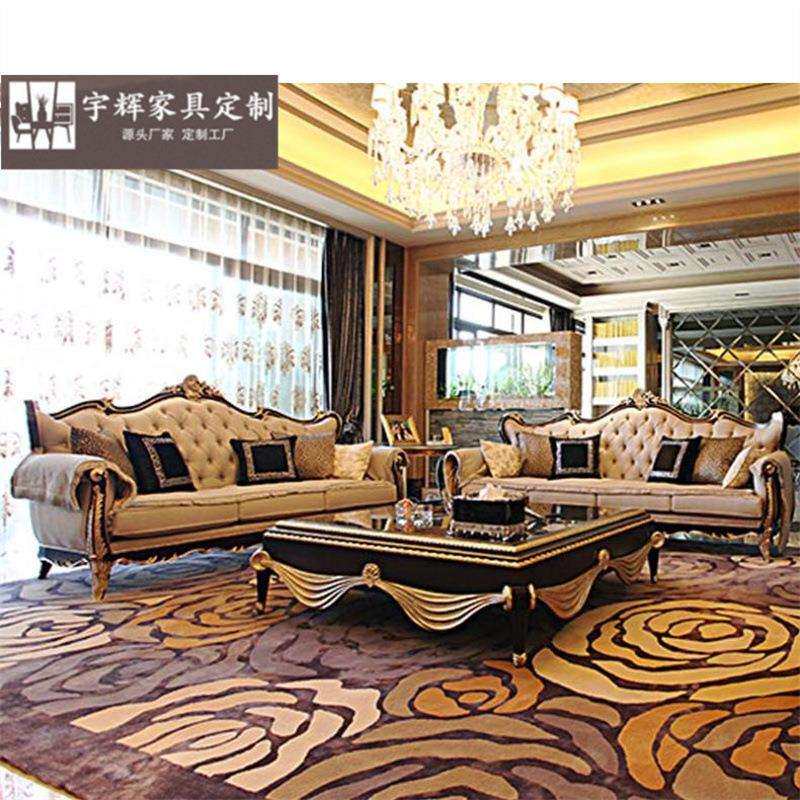 欧式新古典实木雕花沙发大中小户型客厅布艺拉扣沙发组合