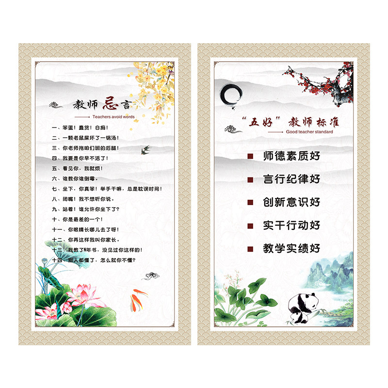 新款教师办公室布置贴纸贴画为人师表教书育人文化标语墙贴师德挂图师德师风八条教师准则