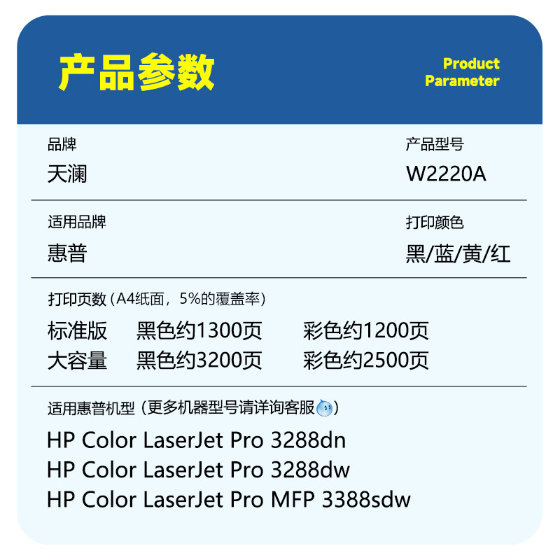 适用惠普W2220A w222a硒鼓3288dw/dn 3388fdw/sdw打印机墨盒LaserJet Pro3201 3301碳粉盒MFP3202 3302 3303