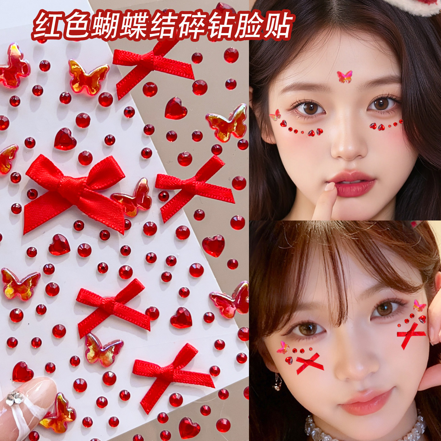 钻石贴纸儿童脸部化妆水钻脸贴新年可爱奖励水晶蝴蝶贴画演出小女孩卡通宝石粘贴美甲装饰过年星星手帐饰品