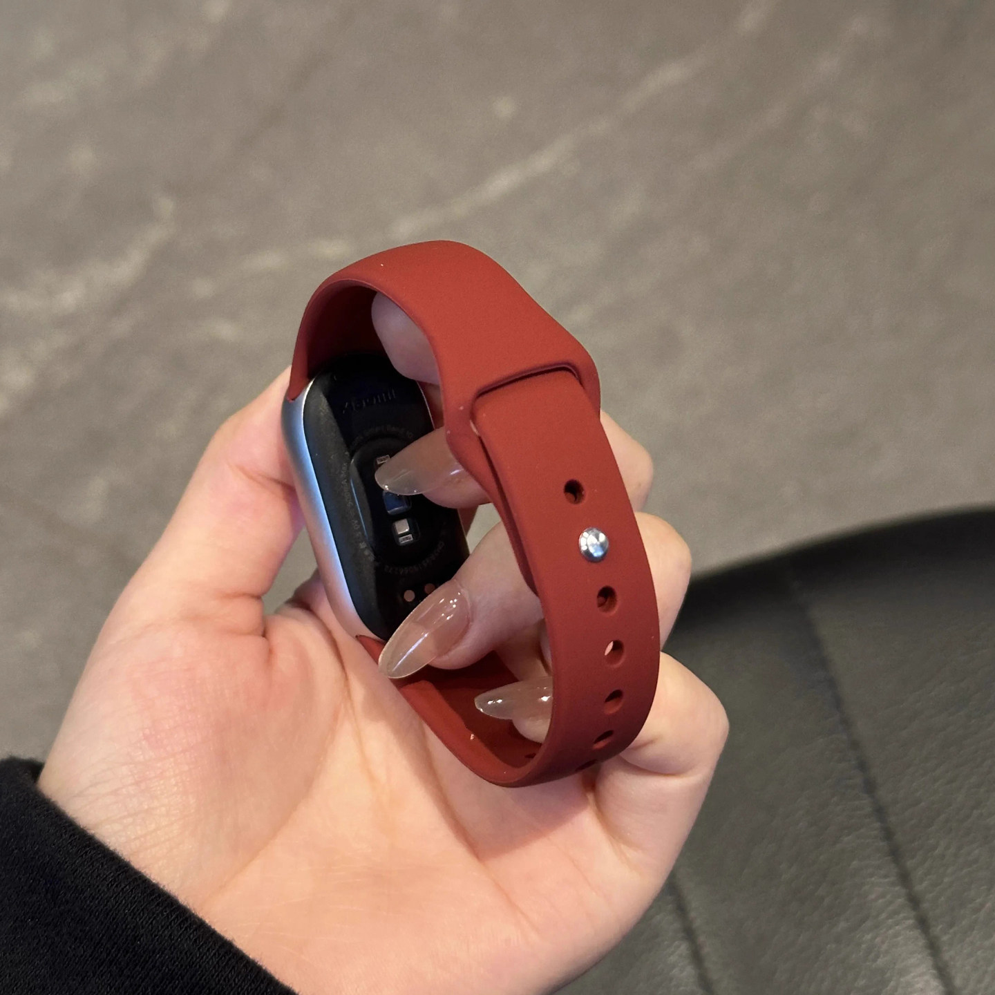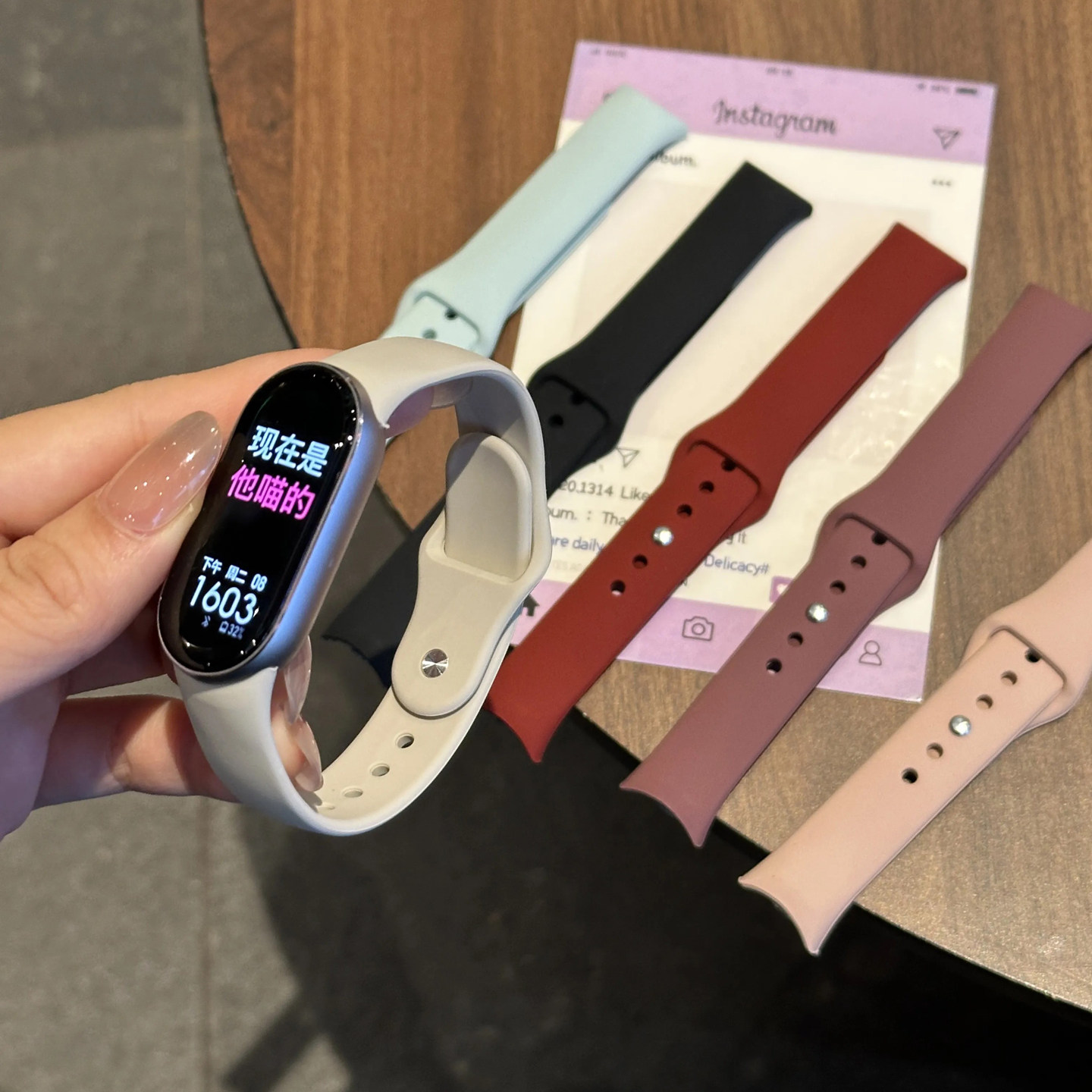适用小米手环10/9/8/7表带运动代6543nfc腕带新款硅胶小众ins手环夏季蝴蝶扣带陶瓷白粉色红色蓝色黑色白色