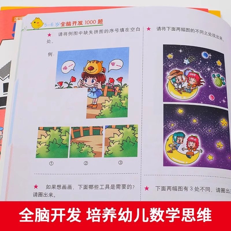 全脑开发700题1000题思维训练儿童思维逻辑专注力益智绘本2-6岁宝宝幼儿园小中班左右脑智力大开发两三岁早教认知游戏书练习能力