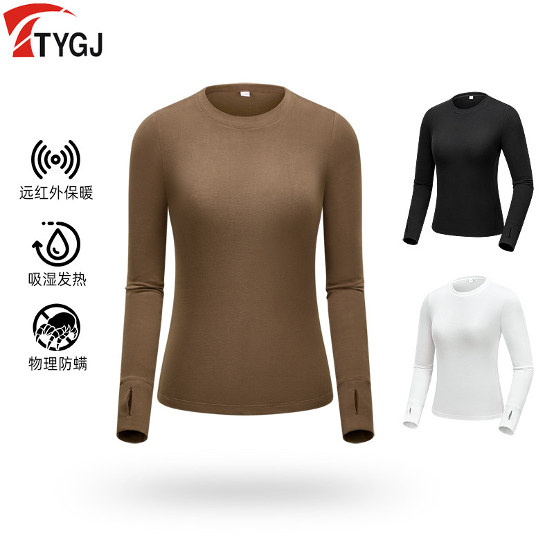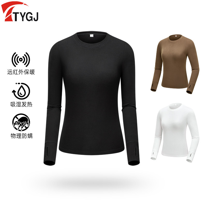 高尔夫服装女士长袖毛绒保暖T恤吸湿发热防螨圆领打底衫显瘦上衣