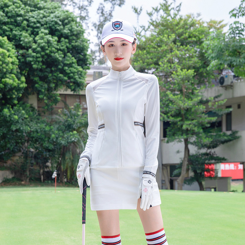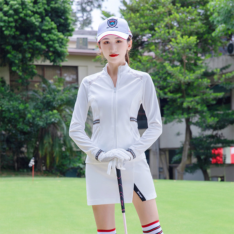 高尔夫女士速干长袖T恤防晒高领拉链性感网纱弹力运动开衫衣服装