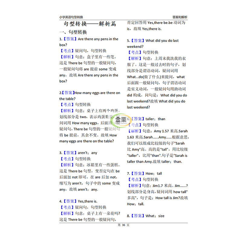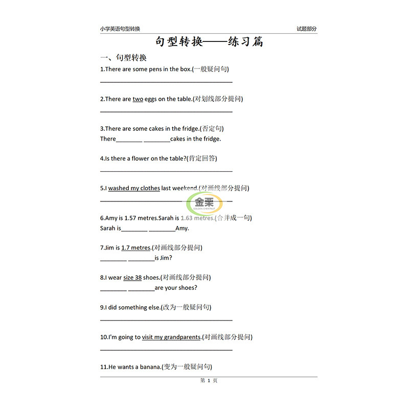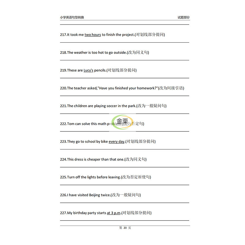 小学英语句型转换专项练习册300题含解析小学三四五六小升初通用