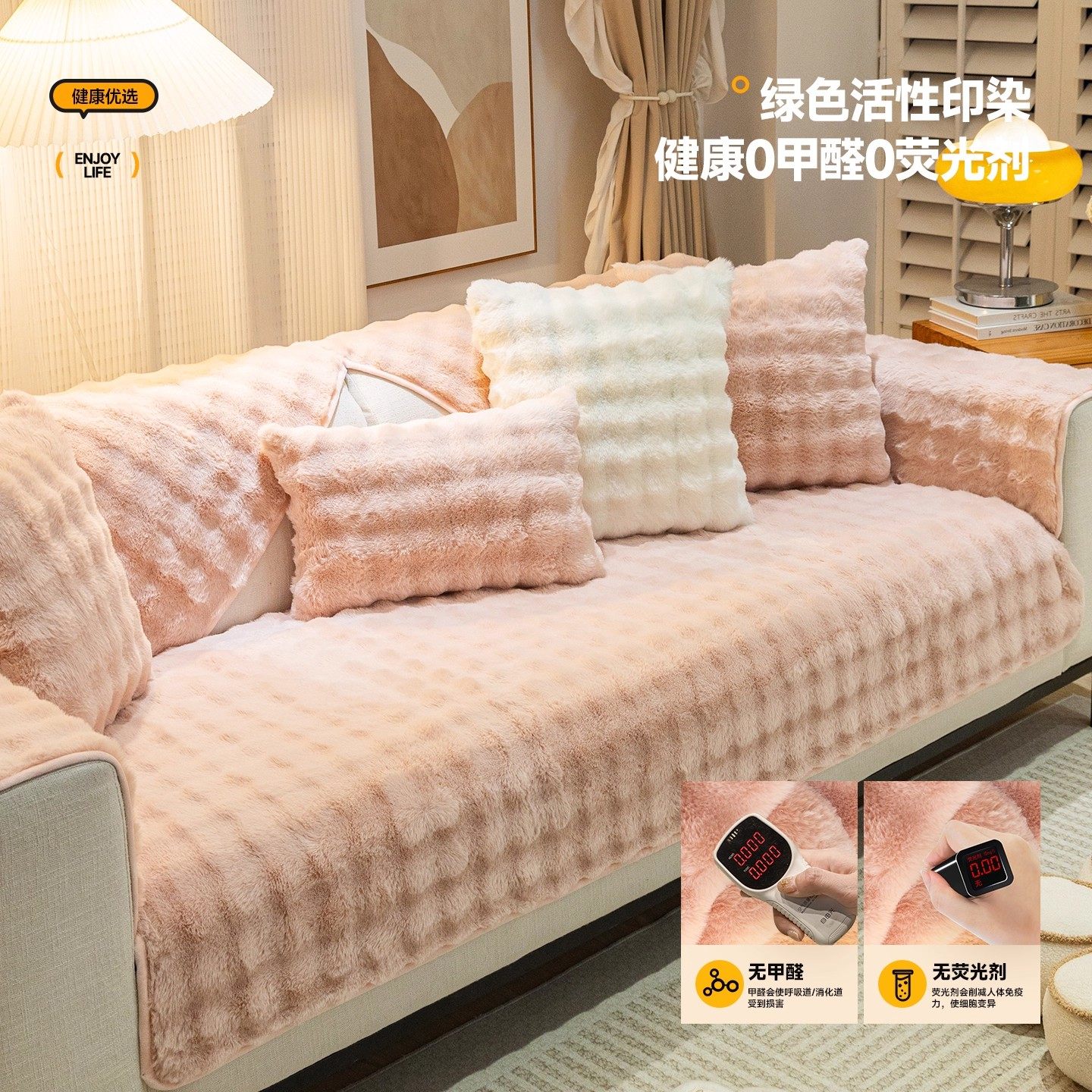沙发垫冬季兔毛绒加厚保暖沙发盖布2024新款防滑高级感全包套罩巾