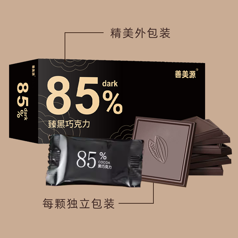 善美源臻黑巧克力纯可可脂百分百巧克力黑巧无添加小包装袋装含量