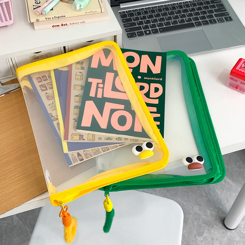 晨光文具学科科目分类袋小学生文件袋拉链式试卷收纳袋透明网纱双层大容量书袋作业资料a4考试专用袋票据产检