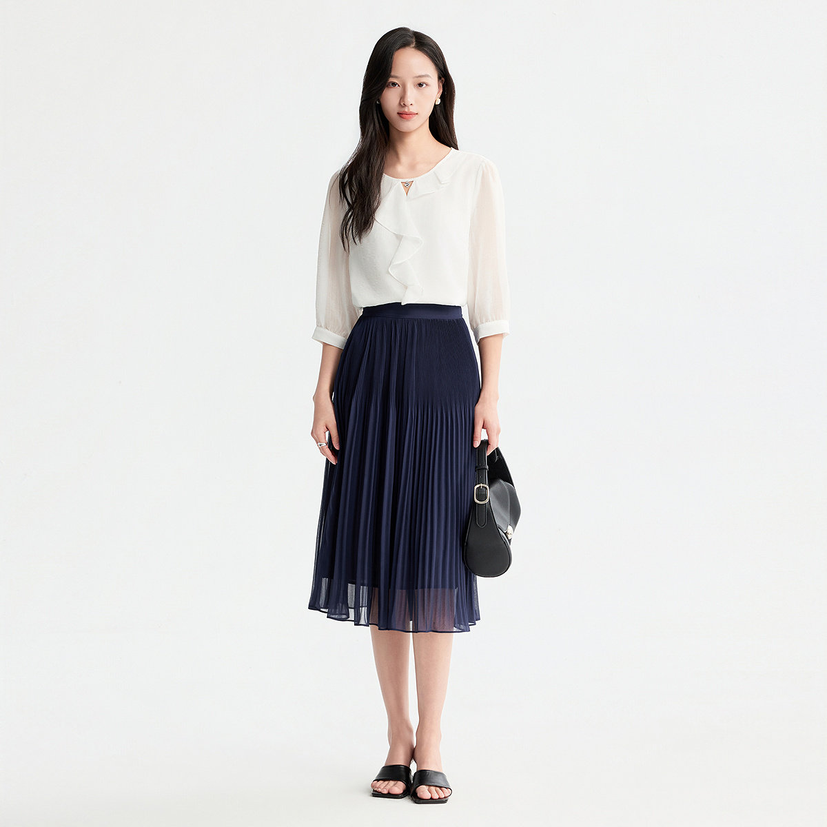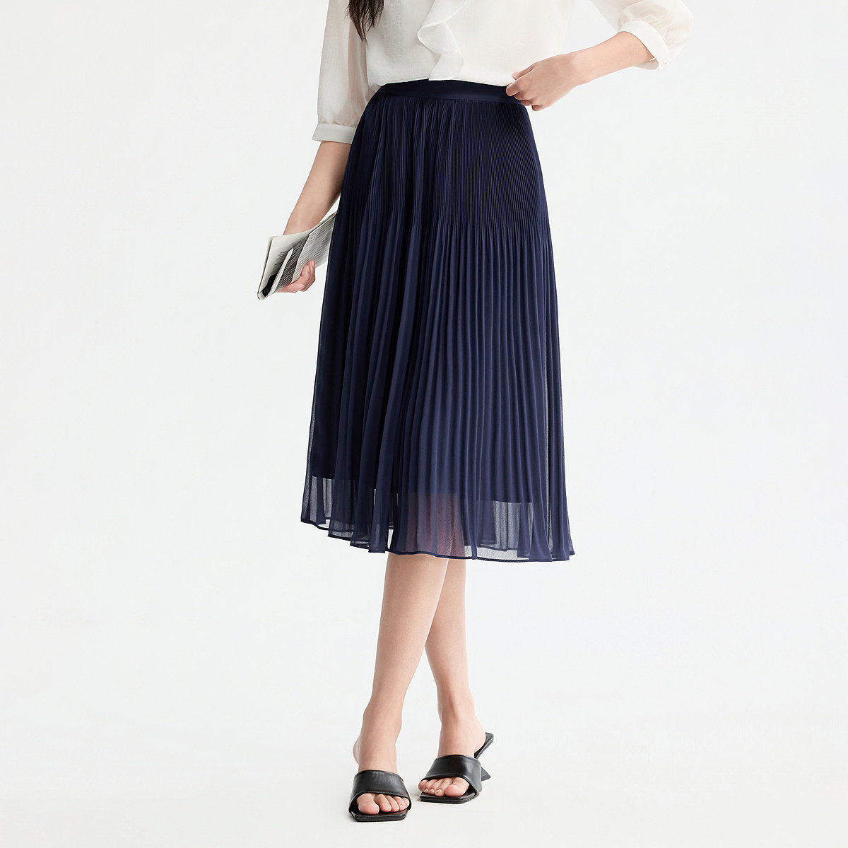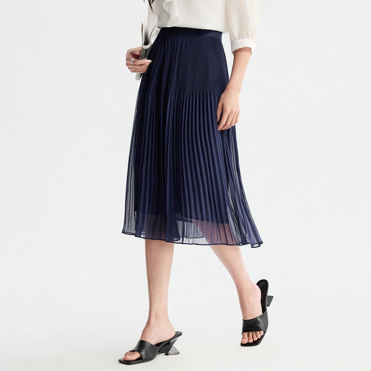 FINITY菲妮迪半身裙2026年春季新款简约中长款优雅减龄百褶半裙女