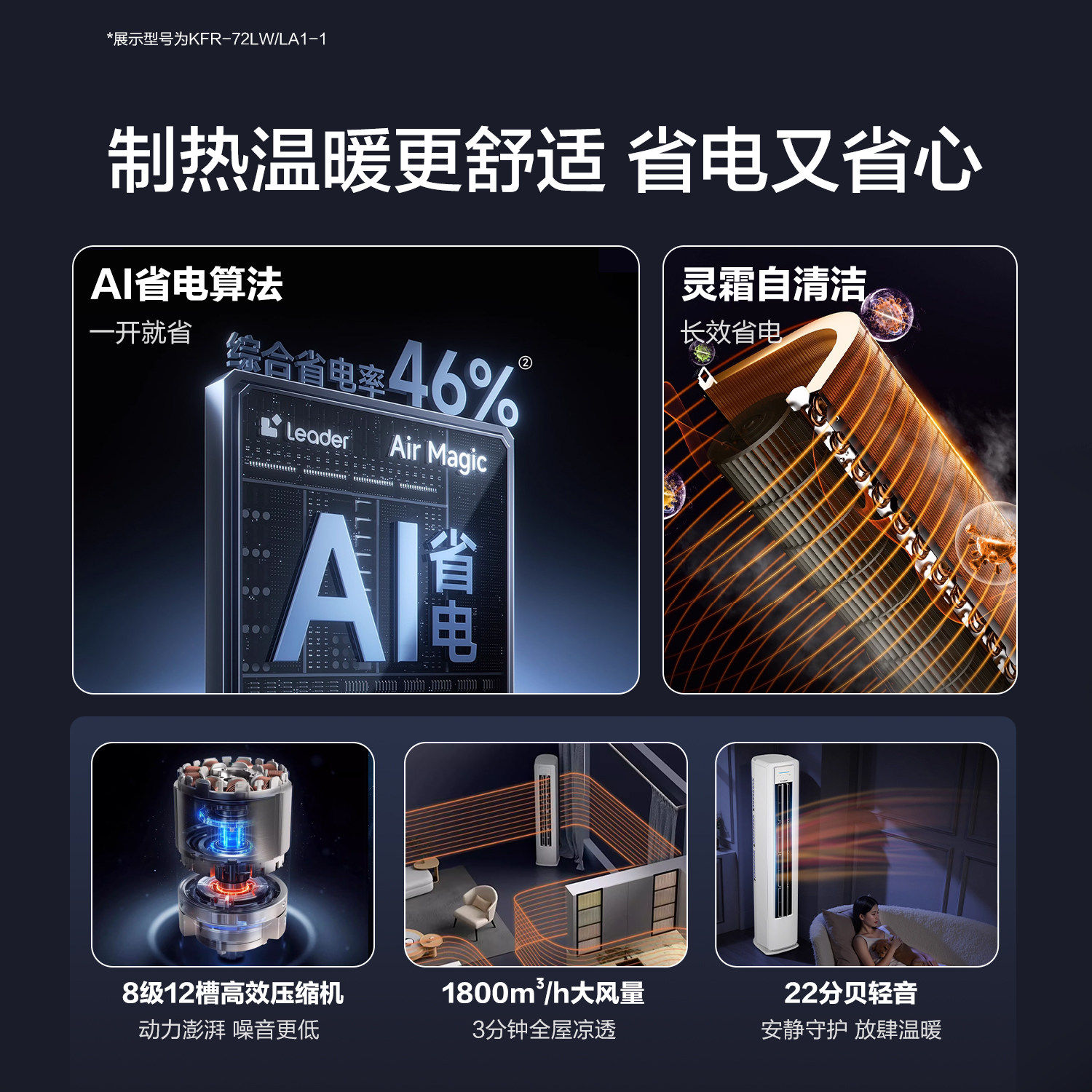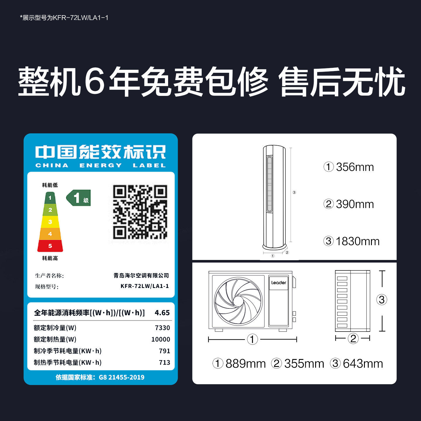 海尔出品统帅空调3匹柜机立式一级能效超省电72la