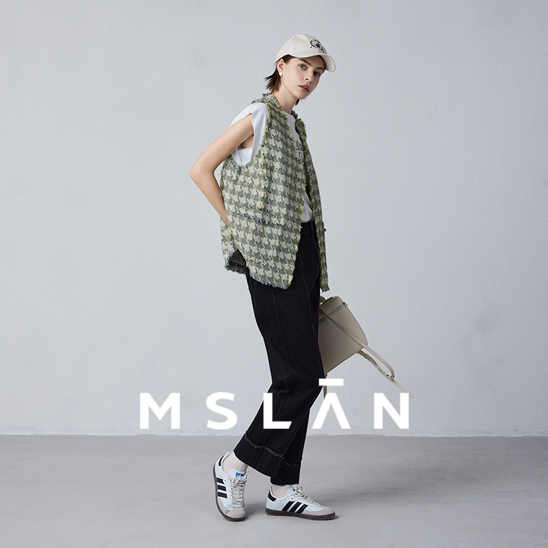 MSLAN26春粗花呢宽松显瘦复古圣诞毛边小香风马甲