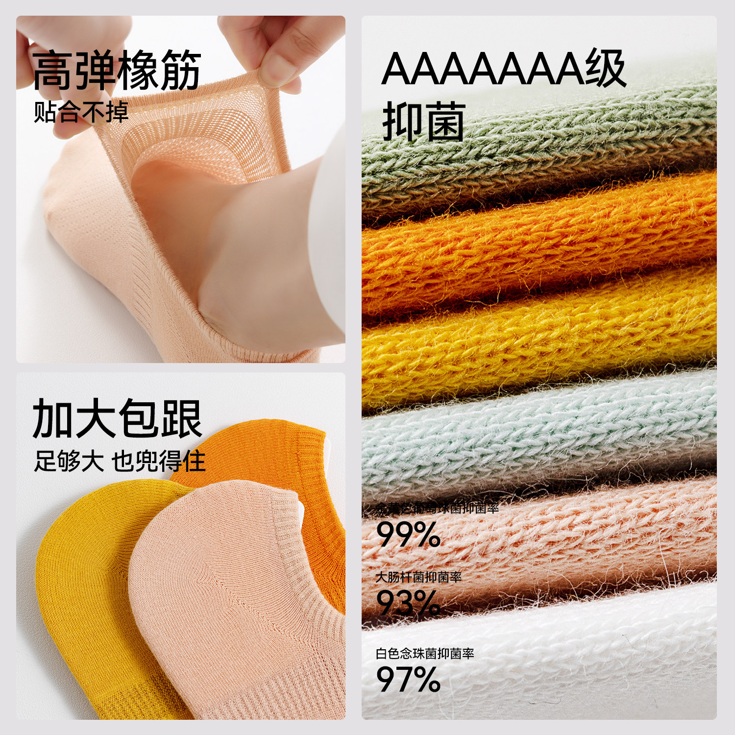 7A抗菌|蕉内银皮555Color男女情侣船袜浅口防滑棉袜隐形防臭袜子