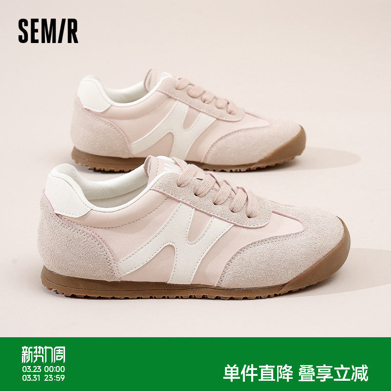 Semir女鞋粉色德训鞋女款2026春夏新款平底轻便百搭休闲运动板鞋