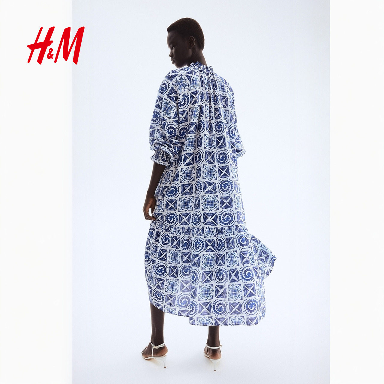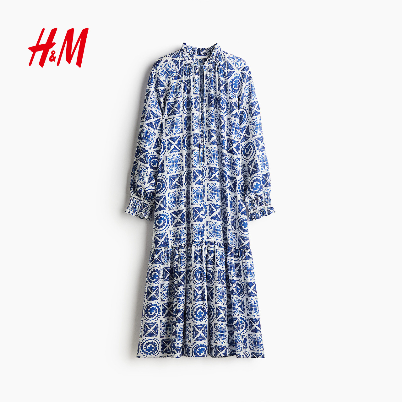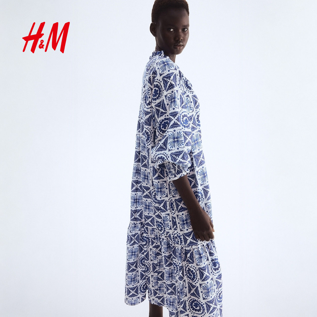 HM女装连衣裙夏季法式v领宽松度假风海洋印花海岛风大摆裙1265610