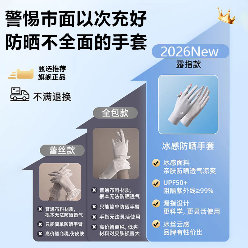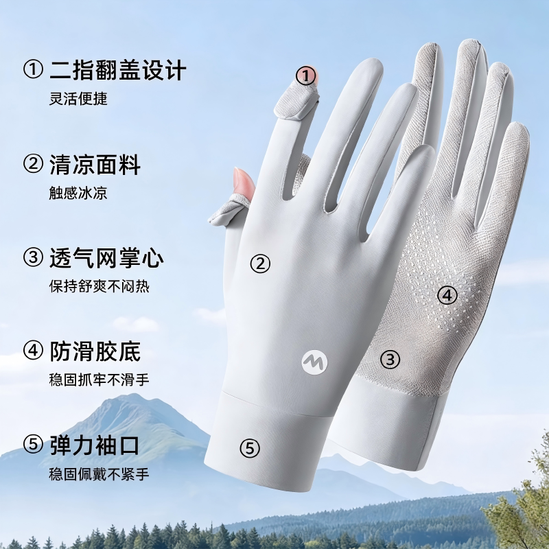 冰丝防晒手套女防紫外线防滑开车骑行骑电动车可触屏女生薄款夏季