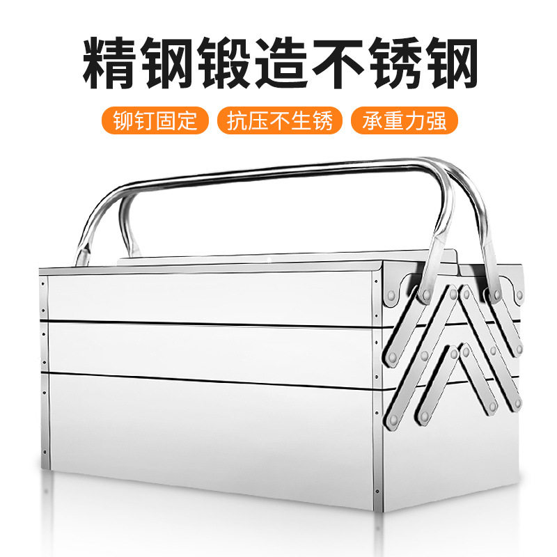 不锈钢手提工具箱三层折叠家用车载铁皮储物盒多层加厚收纳箱双层