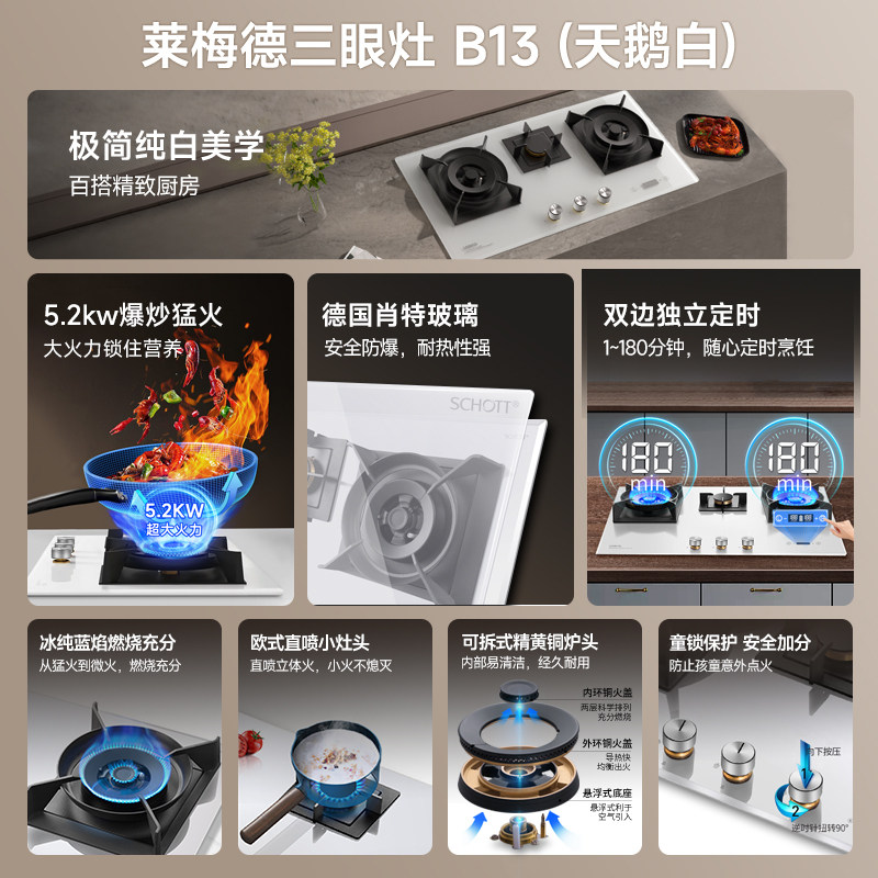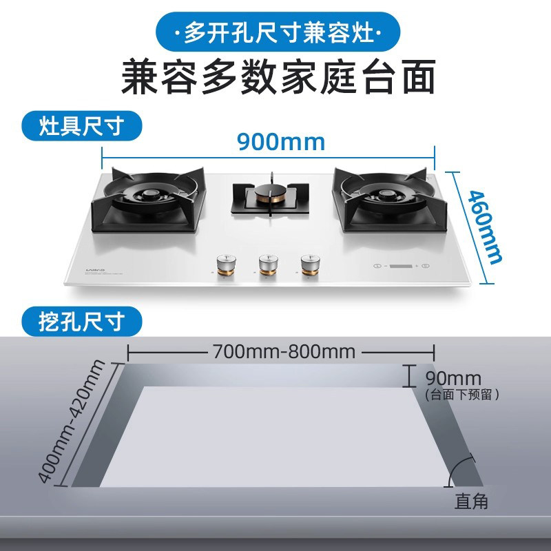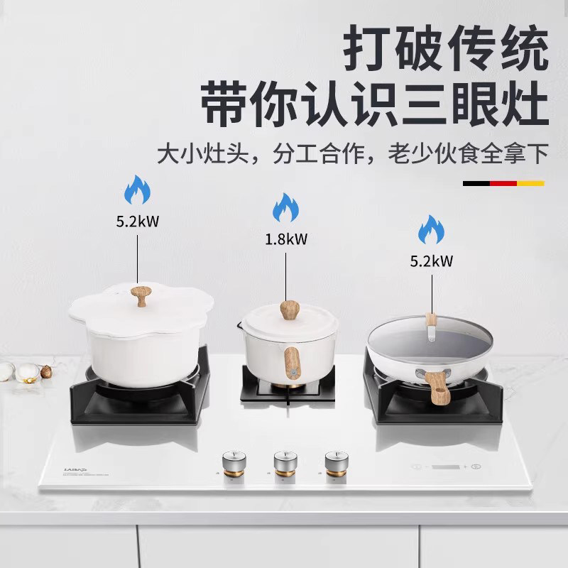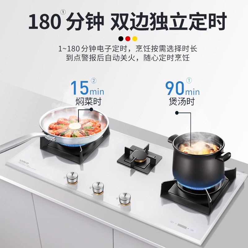 德国LAIMD莱梅德三眼天燃煤气灶白色家用厨房进口大面板双定时灶