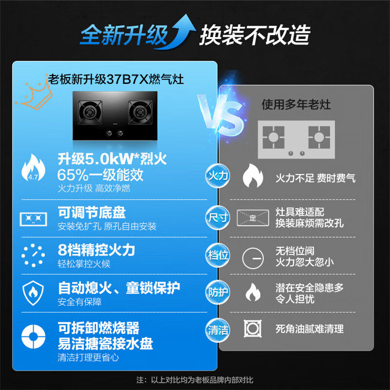 老板37B7X大火力燃气灶炉煤气灶双灶家用厨房台式嵌入式37B5X/E1