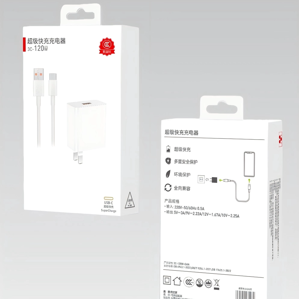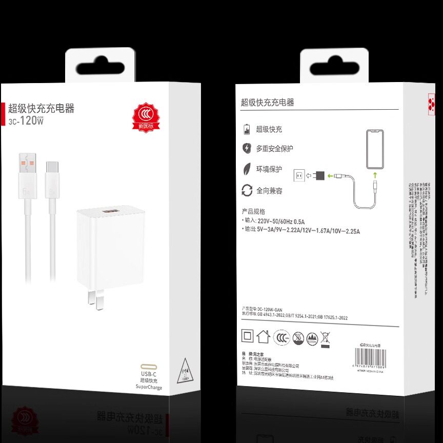 可陈列不怕查 新国标3C认证 3C120W充电器PD快充 适用安卓苹果/OPPO/vivo/手机快充套装充电头小白盒系列