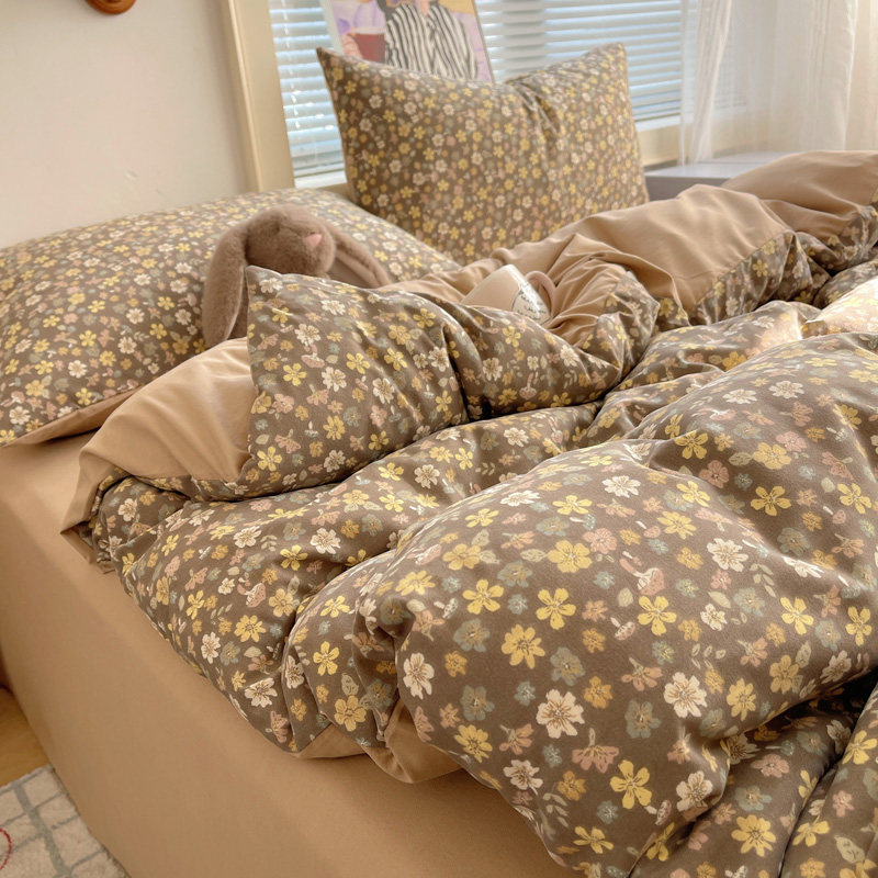 秋冬季加厚四件套牛奶绒被套床单双面加绒被罩床笠学生宿舍三件套
