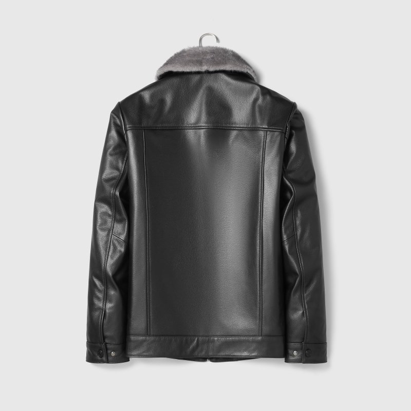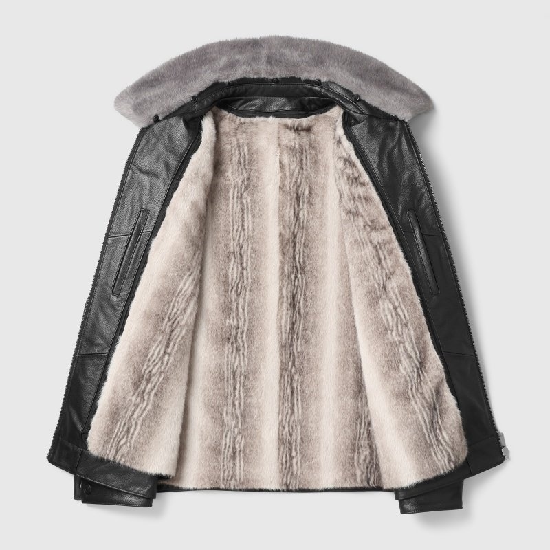 海宁真皮皮衣男头层牛皮中长款皮夹克水貂翻领羽绒兔毛内胆外套冬