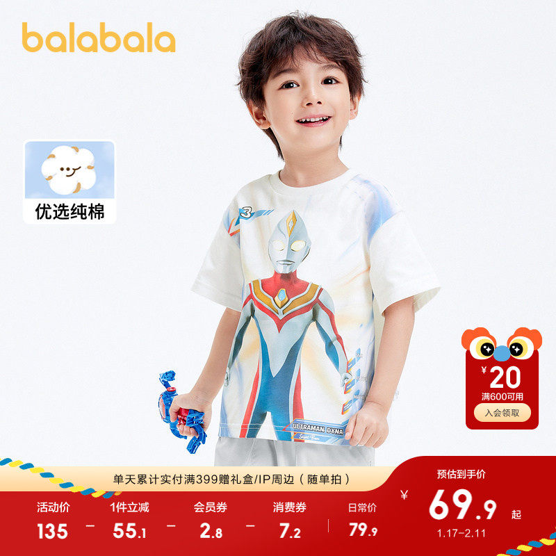 【奥特曼IP】巴拉巴拉童装儿童短袖男童2025春夏装纯棉休闲上衣潮