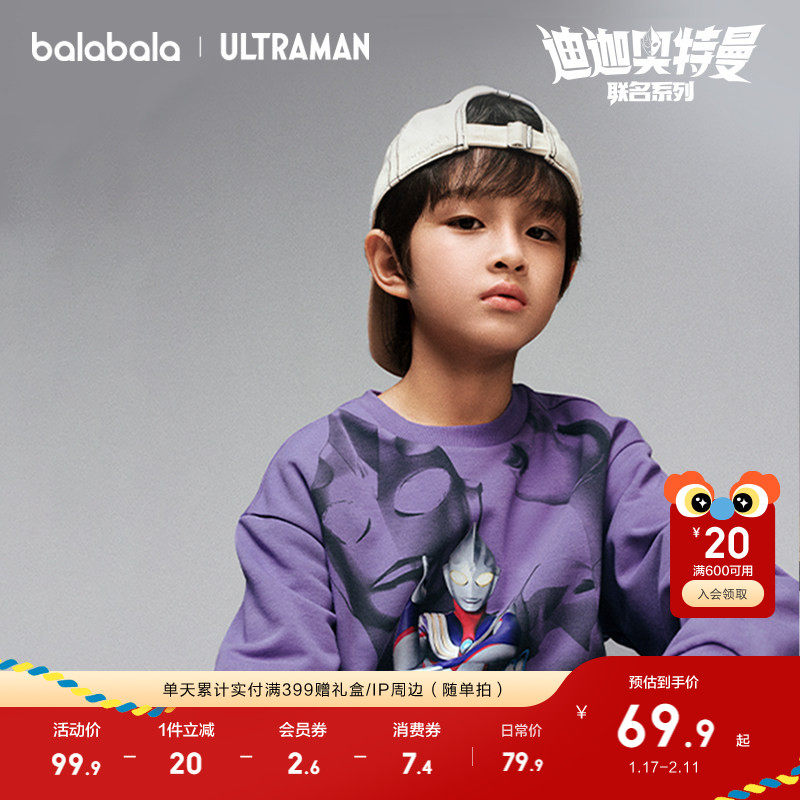 【奥特曼IP】巴拉巴拉童装男童卫衣长袖上衣秋装套头舒适时尚潮酷