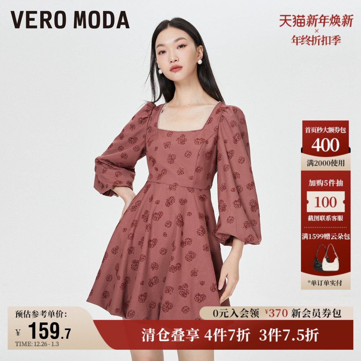 Vero Moda奥莱连衣裙子秋冬清仓法式甜美气质方领泡泡袖公主裙女