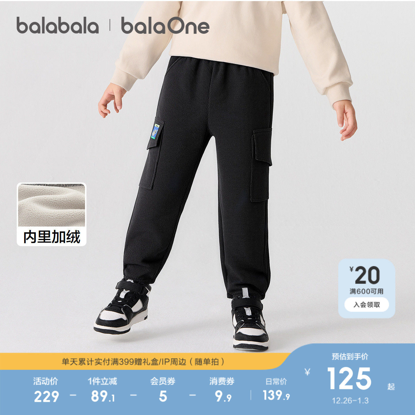 【balaOne】巴拉巴拉童装儿童裤子男童加绒长裤2025冬装新款工装