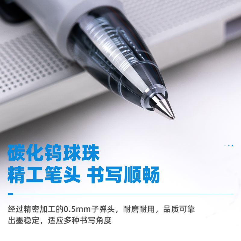 得力文具中性笔按动笔黑色0.5子弹头红笔学生用可定制笔广告笔企业展会礼品笔刻字商务圆珠笔s01升级超越k35