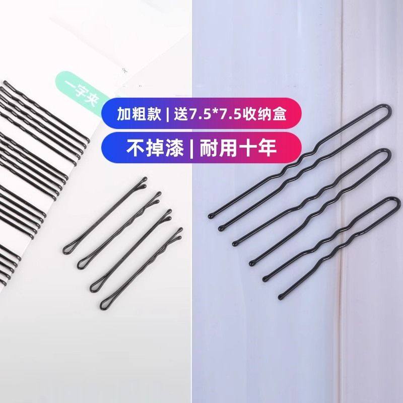 发卡钢夹子头饰发夹黑色女一字夹加粗侧边夹刘海夹盘发造型夹子