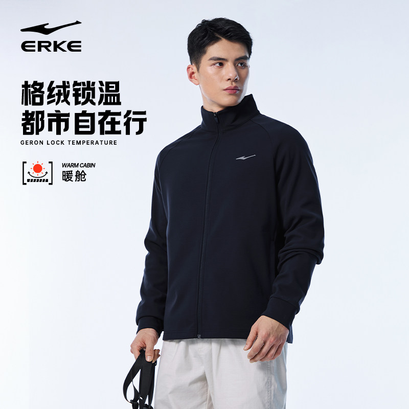 暖舱丨鸿星尔克外套男春季男士加厚立领行政夹克运动上衣男装
