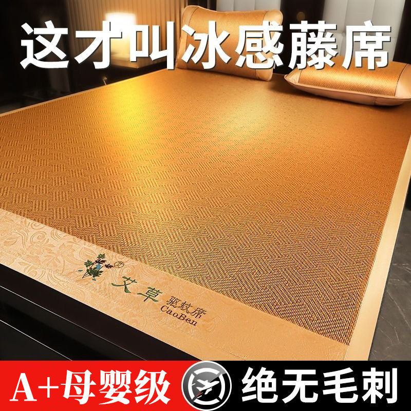 艾草加厚2025新藤席子凉席双人可折叠冰丝席竹席单人学生宿舍夏天
