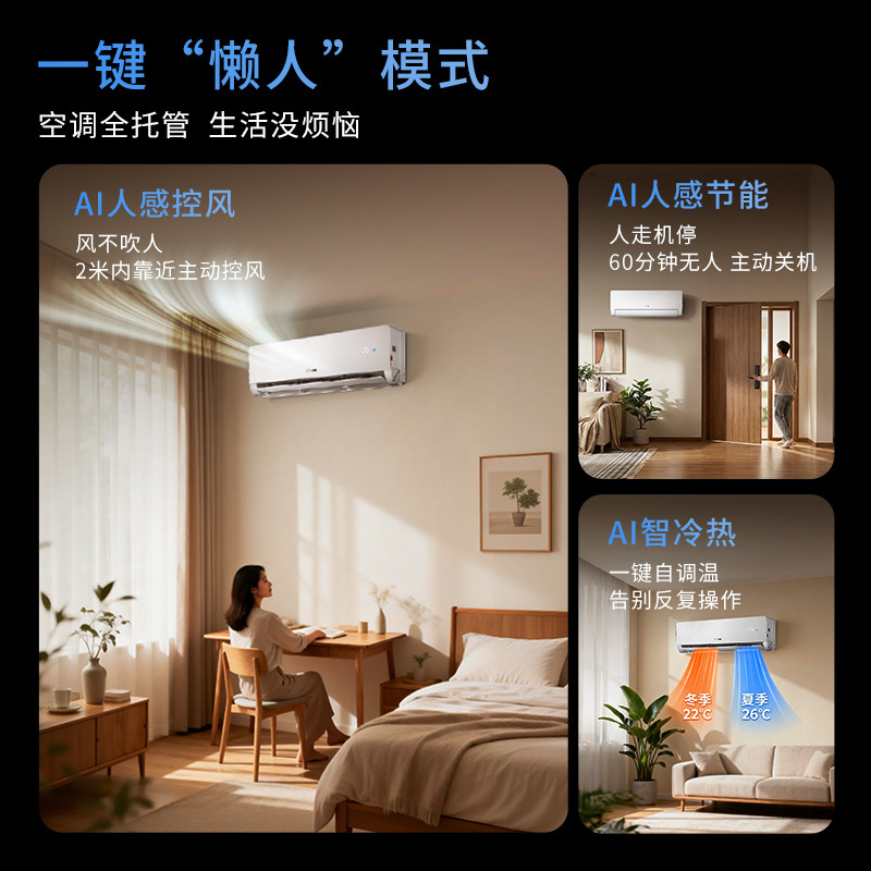 新品[懒人神机-人感防直吹]海尔出品统帅空调1.5匹新一级卧室挂机