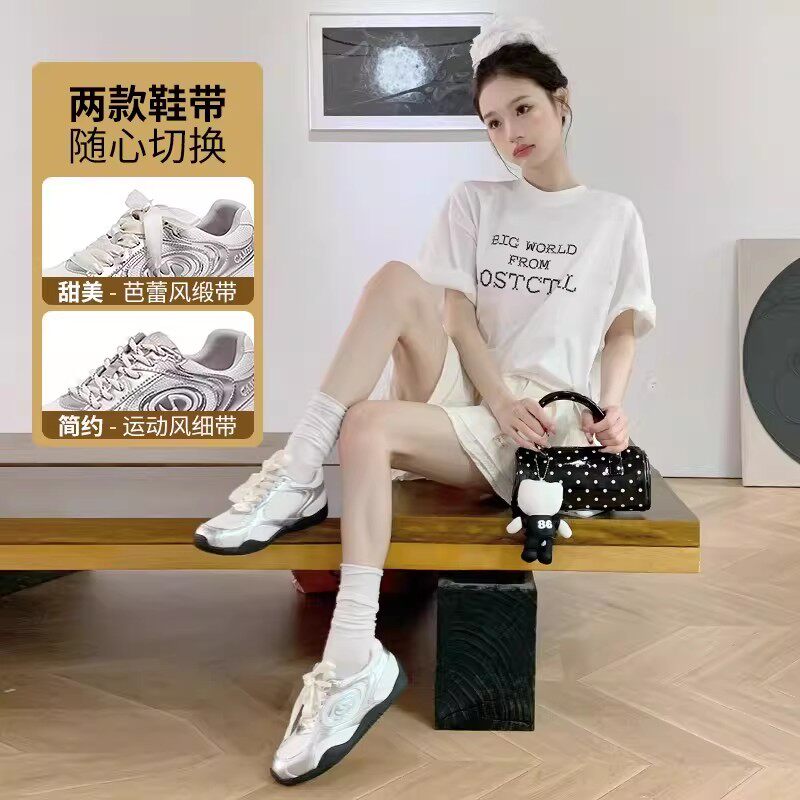 银色芭蕾德训鞋女款2026新款春季厚底女鞋休闲运动鞋复古增高鞋子
