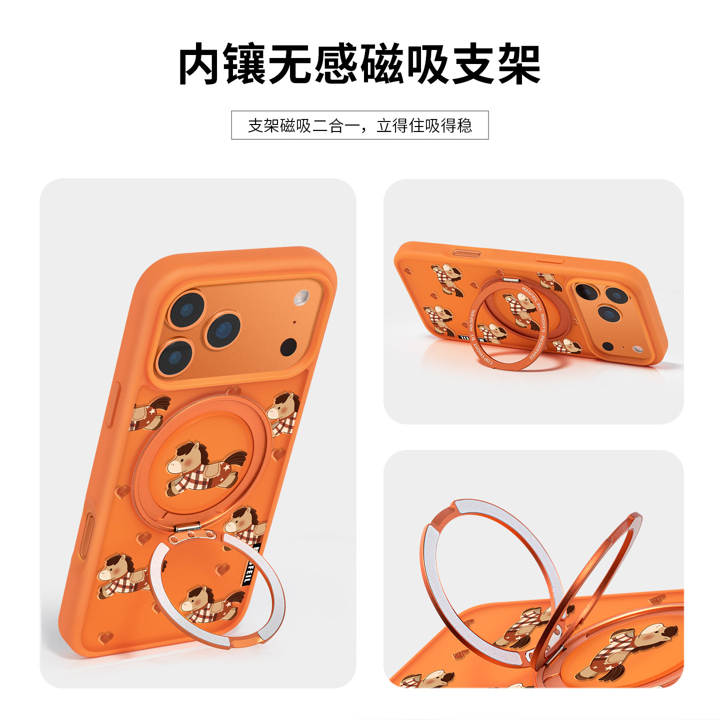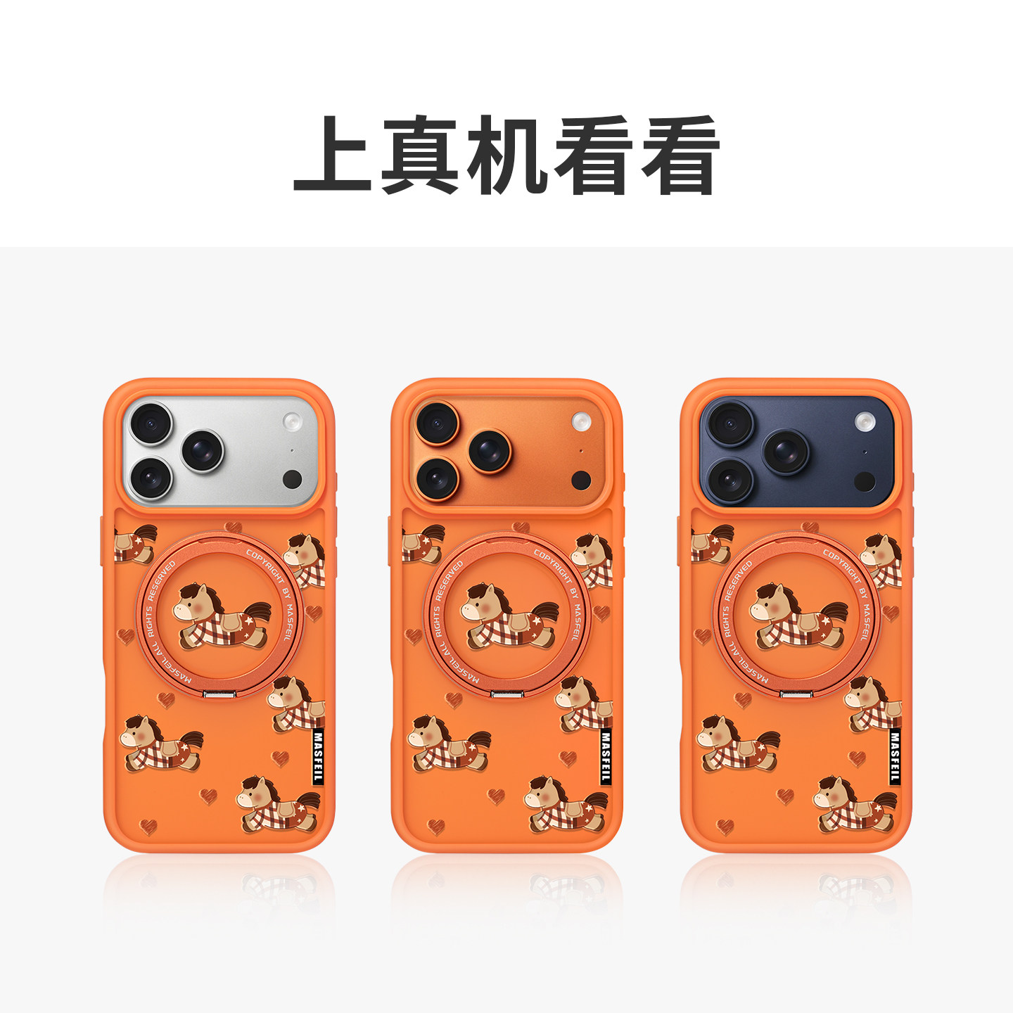 MASFEIL × 复古小马适用苹果17promax手机壳iPhone17pro新款带支架ip17全包Fo5磁吸支点新年高级感保护套