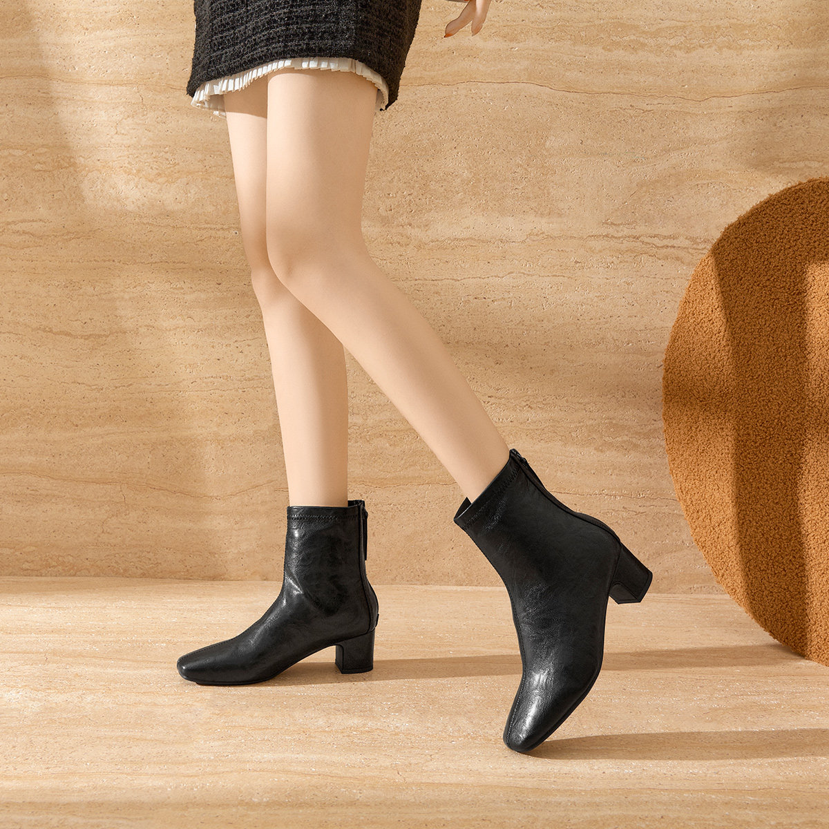 戈美其增高粗跟时装靴女款2025新款冬季瘦瘦靴弹力小个子高跟短靴