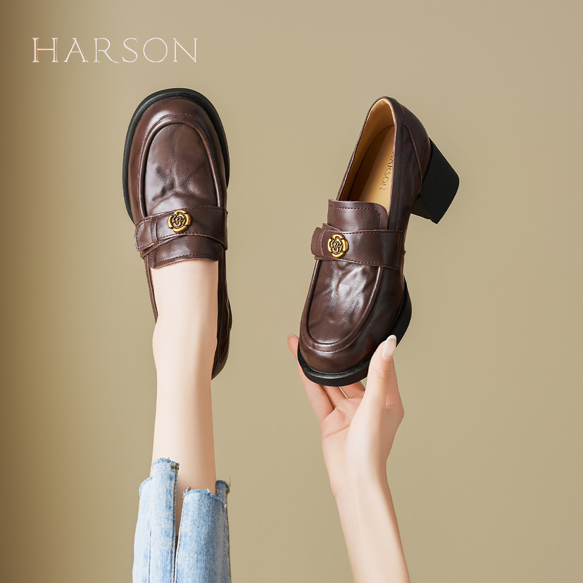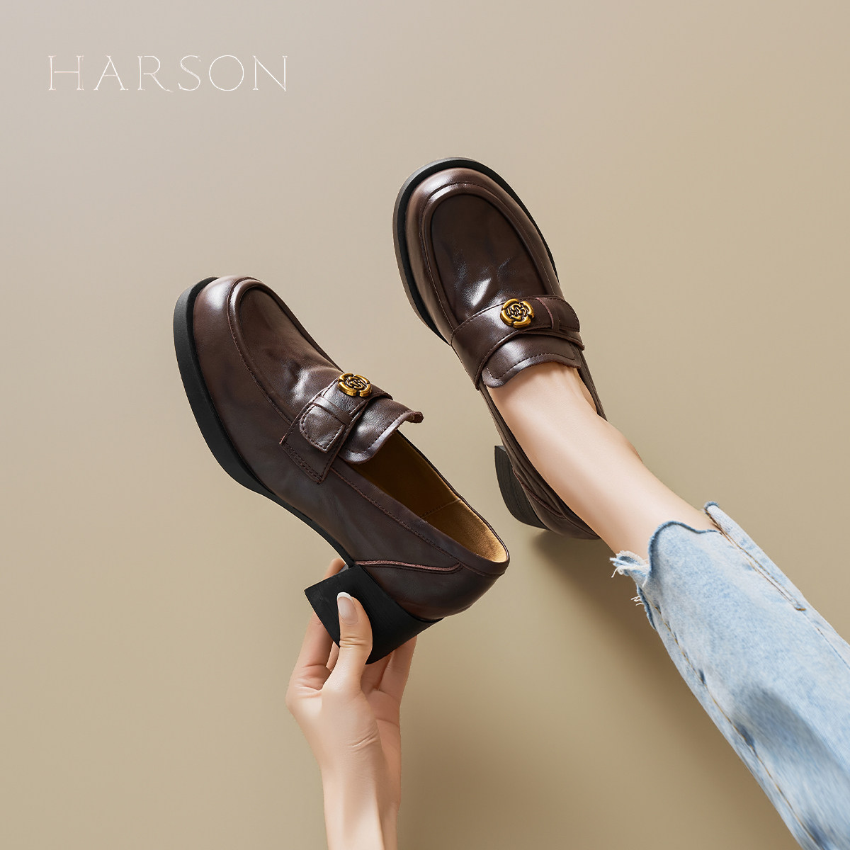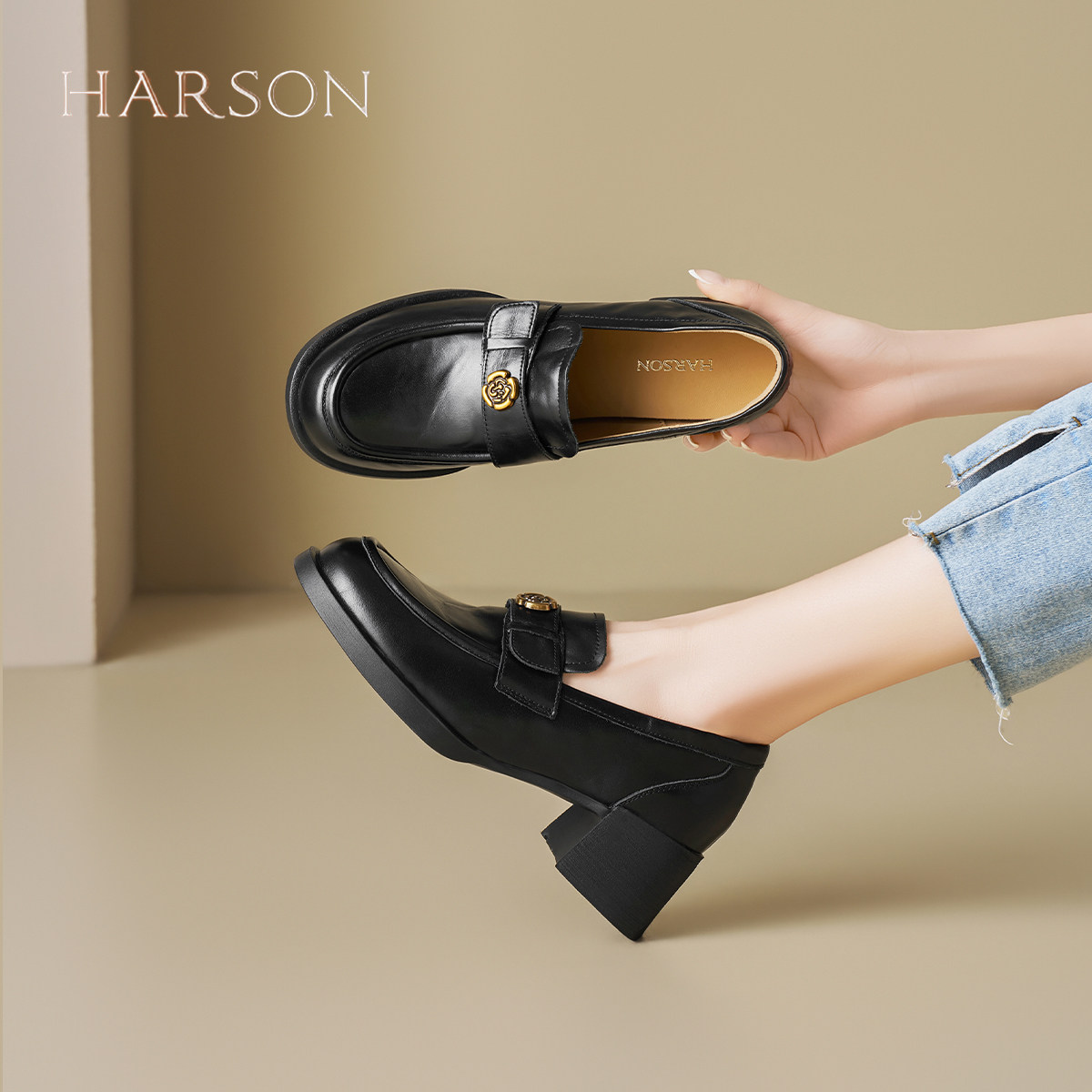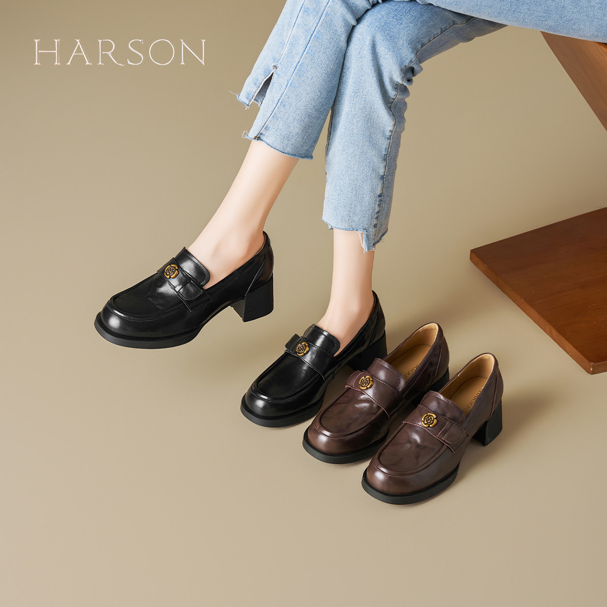 哈森英伦风厚底乐福鞋女2026春季新款爆款时装小皮鞋通勤粗跟单鞋