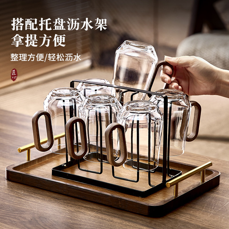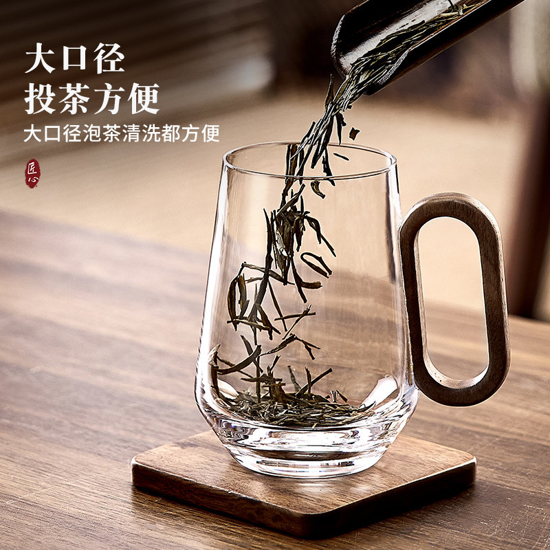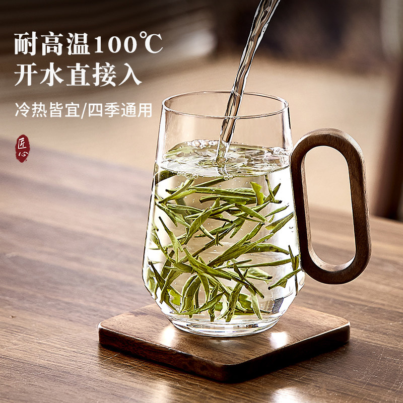 青苹果玻璃杯带把手泡茶杯绿茶杯套装专用男士办公室家用杯耐高温
